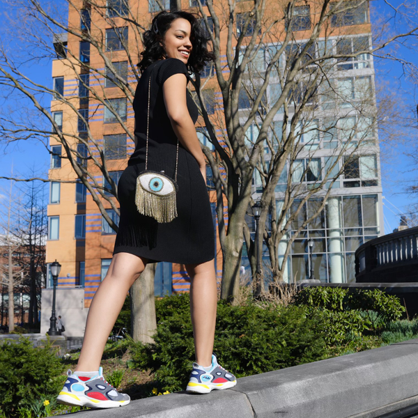 Ward off evil with this mythical and beautiful EVIL EYE clutch with fun beaded fringe to jazz up your look.
